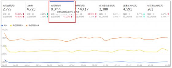 打開生意參謀,在首頁就可以看到你的綜合支付轉(zhuǎn)化率跟同行同層均值對比的情況,一般情況(我這里為什么說一般情況,因?yàn)檫€有特殊的),如果你的這個綜合支付轉(zhuǎn)化率遠(yuǎn)低于行業(yè)均值的話,都意味著你在消化流量的能力上是不行的,顯而易見的,搜索引擎就會減少對你免費(fèi)自然搜索流量的扶植。