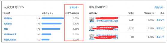 你像這個店鋪,我現(xiàn)在看到的是最近30天的PC端的數(shù)據(jù),排名前五的進(jìn)店關(guān)鍵詞,除了第二個“餐具套裝”有0.53%的下單轉(zhuǎn)化率以外,另外的四個關(guān)鍵詞的下單轉(zhuǎn)化率都是0,這至少說明對于PC端來講,進(jìn)店關(guān)鍵詞是非常不精準(zhǔn)的。