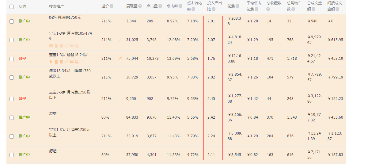 第五步:在測試人群的過程中,日限額肯定是需要逐日提高,因為會隨著你的權(quán)重越來越高,你的點擊越來越快,這個時候就是需要你去優(yōu)化ROI的時候,把產(chǎn)出不太好的人群和關(guān)鍵詞降低一些出價,沒有產(chǎn)出的關(guān)鍵詞和人群直接記錄刪除,產(chǎn)出好的可以提高出價