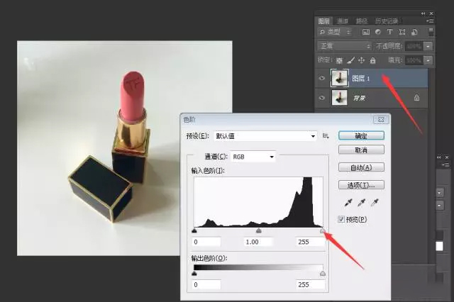 要養(yǎng)成好習(xí)慣,處理前先復(fù)制圖層,然后調(diào)出色階命令,快捷鍵是CTRL+L