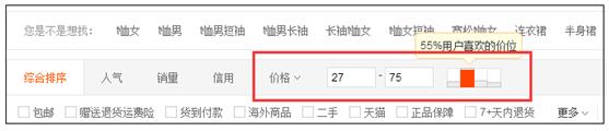 這個(gè)是很多時(shí)候,是淘寶運(yùn)營(yíng)人員界定競(jìng)爭(zhēng)對(duì)手的主要維度,就是同一個(gè)價(jià)格段位的產(chǎn)品是互相競(jìng)爭(zhēng)的。這個(gè)是比較容易理解的,因?yàn)椴煌慕?jīng)濟(jì)水平必然會(huì)決定不同的消費(fèi)檔次,這一點(diǎn)在淘寶的搜索結(jié)果頁(yè)面也通過(guò)價(jià)格柱體現(xiàn)出來(lái)。所以,你在界定競(jìng)爭(zhēng)對(duì)手的時(shí)候,關(guān)于價(jià)格層面可以直接通過(guò)價(jià)格柱去卡!