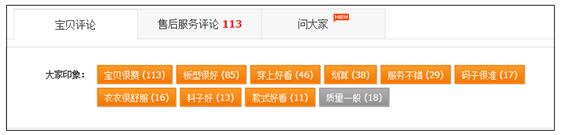 比如這款寶貝,是一款30多塊錢的連衣裙,你可以看到,消費(fèi)者關(guān)注的焦點(diǎn)集中在:版型、是否好看上面,也就是前面說(shuō)的會(huì)關(guān)注款式,關(guān)注啥,你就應(yīng)該在詳情頁(yè)當(dāng)中去凸顯啥。再看下面這個(gè):