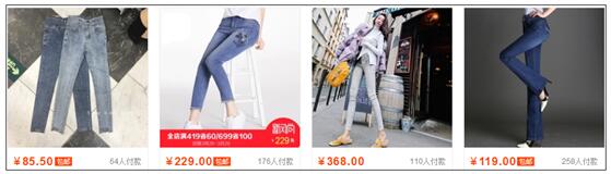 當(dāng)一個(gè)消費(fèi)者搜索“牛仔褲女 修身顯瘦”,的時(shí)候,消費(fèi)者的內(nèi)心需求:覺得自己比較胖,或者覺得自己的腿比較短,希望穿上這個(gè)牛仔褲能夠給自己大長腿的感覺。于是你看看下面的主圖: