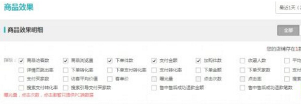 然后我們從單品分析里,也可以看到更具體的PC端,哪些詞的曝光量,點擊率如何。這里說下,詞的匹配度相關性對點擊率影響也很大。