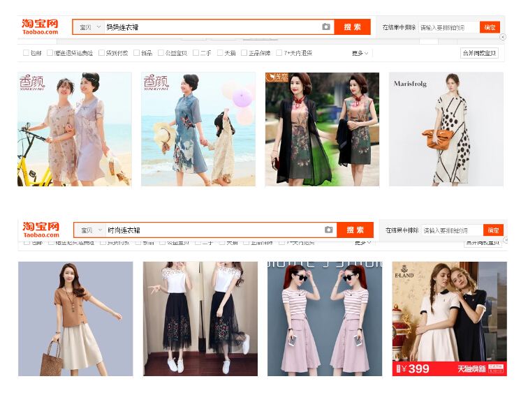 比如說(shuō):時(shí)尚連衣裙,媽媽連衣裙,他們背后的買(mǎi)家人群是不一樣的