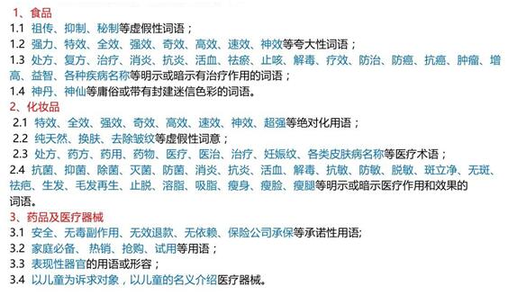 二、針對特殊行業(yè)特殊商品的廣告語違禁詞。