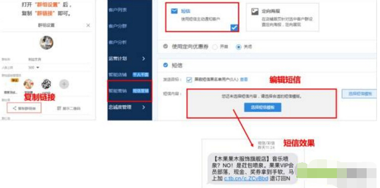 淘寶粉絲群相信大家都知道,作為店鋪可以通過(guò)客戶(hù)運(yùn)營(yíng)平臺(tái)圈定我們的目標(biāo)客戶(hù),通過(guò)短信推送提醒客戶(hù)加入我們的專(zhuān)屬粉絲群。(如下圖)這樣就達(dá)到了短信與其他渠道的有效結(jié)合,而不僅僅只是通知客戶(hù)直接回來(lái)購(gòu)買(mǎi)。