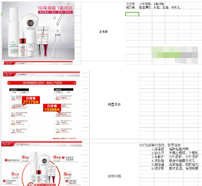 類似于這種表格形式,對競品寶貝的詳情頁進(jìn)行深度拆解,包括詳情框架和文案。