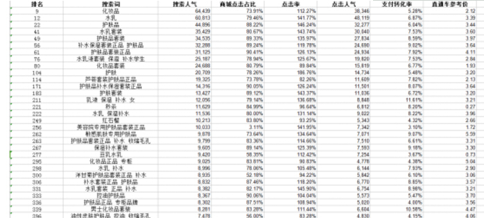 比如說我們剛才舉例的是商品所在的子葉類目為面部護(hù)理套裝,那我們需要去統(tǒng)計(jì)下最近7天面部護(hù)理套裝類目的熱搜關(guān)鍵詞。