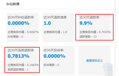 然后就是店鋪的退款率,退款速度,品質(zhì)退款率等等,不說(shuō)要做得多好,起碼不能被同行平均比了下去,淘寶官方?jīng)]有特定的指標(biāo)說(shuō)這些指標(biāo)做得不好對(duì)自然流量影響有多大,不過(guò)根據(jù)實(shí)際案例,退款指標(biāo)不達(dá)標(biāo)的店鋪,發(fā)展瓶頸會(huì)來(lái)得很早,會(huì)發(fā)現(xiàn)越來(lái)越難沖上去。