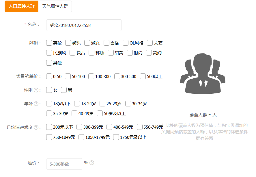 店鋪直通車人群的篩選,每個店鋪都會有屬于自己店鋪的風(fēng)格活動,年齡段等人口屬性,如下圖,針對確定的人群進行溢價投放,針對不確定的人群進行溢價測試。
