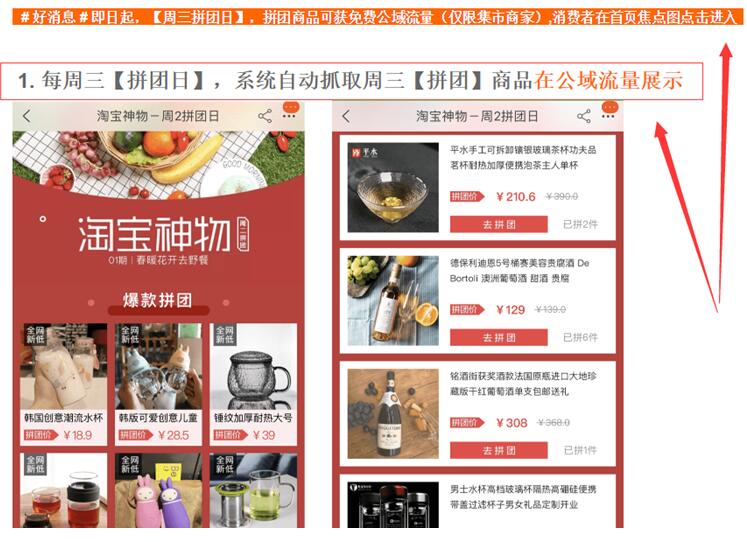 說完了猜你喜歡這里再給大家說一個適合新品做的店內(nèi)活動,雖然說是店內(nèi)活動,但是這個活動每周是有計劃上淘寶首頁的。這個活動就是淘寶的拼團(tuán)。