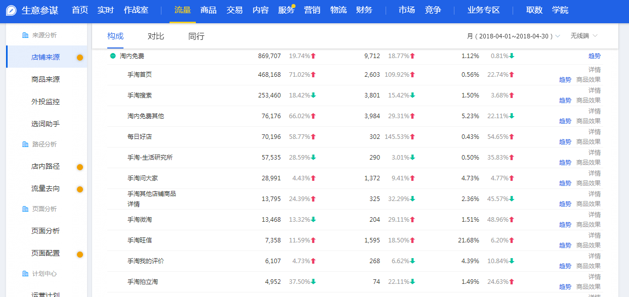 這是剛接到的一個美妝店鋪當時淘內(nèi)免費流量情況,這里只摘取關(guān)鍵的幾個流量入口。