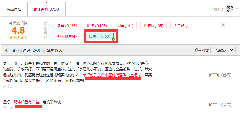 評(píng)論區(qū)買(mǎi)家對(duì)產(chǎn)品有意見(jiàn),多人說(shuō)產(chǎn)品質(zhì)量存在問(wèn)題,一人說(shuō)有,是差評(píng),多人說(shuō)有,就要考慮事情是如何的。接受程度高的買(mǎi)家,可以忽略,但是對(duì)于有選擇困難癥的買(mǎi)家,這樣的點(diǎn),是他們沒(méi)法接受的。