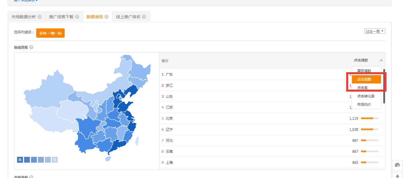 5. 地域篩選出優(yōu)質(zhì)關(guān)鍵詞的共同高點(diǎn)擊指數(shù)和高點(diǎn)擊率的共同地域5—10個(gè)。