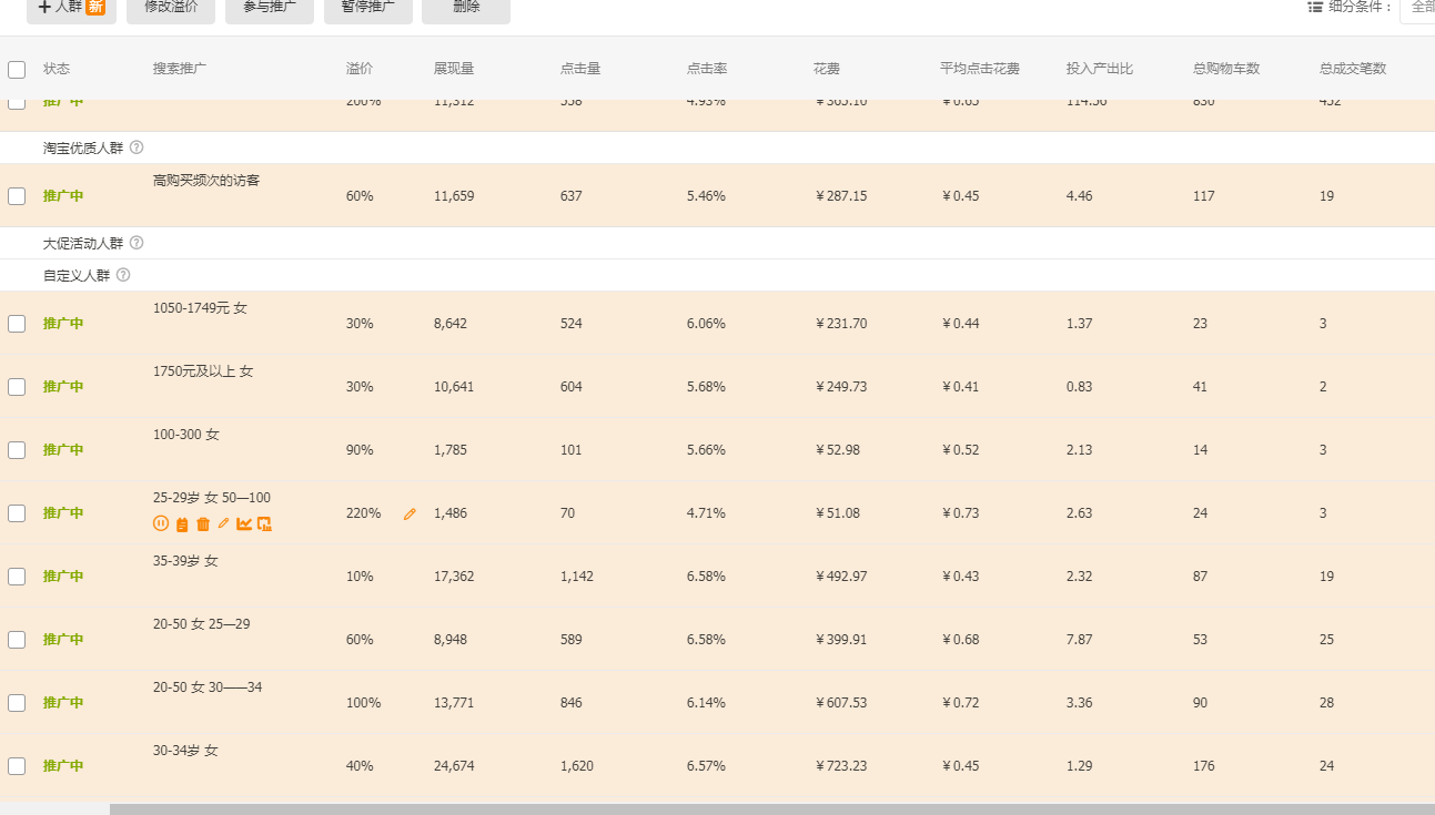 6. 自定義人群和店鋪定制人群添加一級(jí)人群,每個(gè)人群溢價(jià)5%。