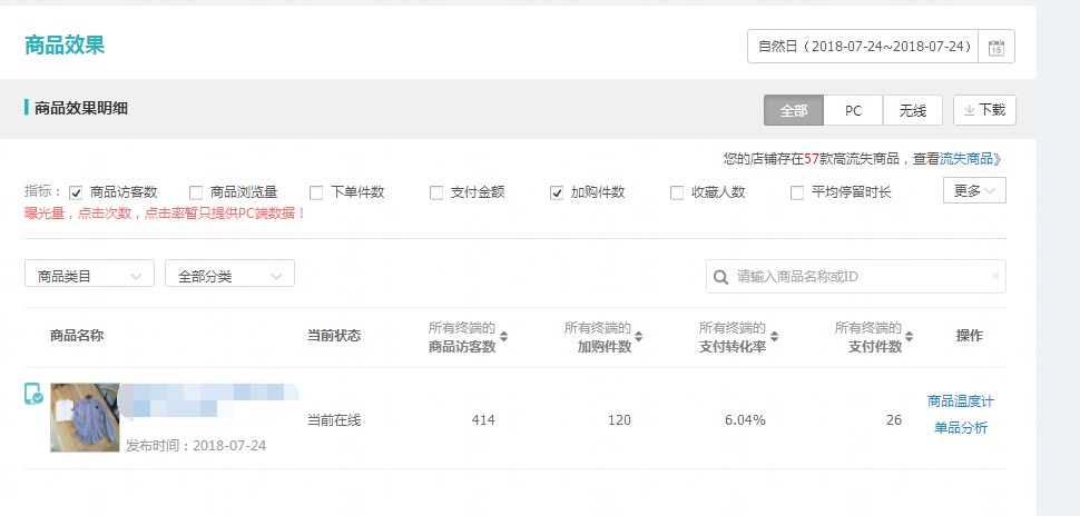 這是我手里一個(gè)店鋪的其中某個(gè)秋款,24號(hào)第一波秋款上新,當(dāng)天賣了26件,轉(zhuǎn)化率非常高,加購(gòu)數(shù)量有120,為秋款做了一個(gè)很好的開頭。