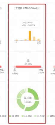 看新買家訪客人群,消費(fèi)層級在70-145,未支付訪客0-15,再看一下性別,女性居多,年齡段在26-30,成交的訪客年齡會偏大些,所以說成交訪客有一定的消費(fèi)能力,但是寶貝匹配到的不符合購買需求,就會流失客戶,這時(shí)需要進(jìn)一步投放優(yōu)質(zhì)人群。