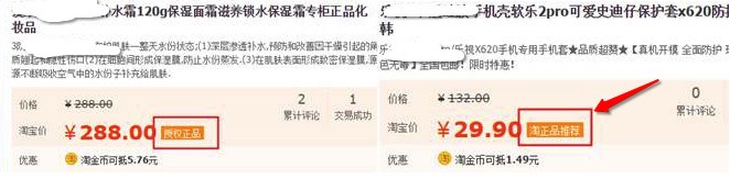 為維護(hù)淘寶網(wǎng)健康的市場(chǎng)秩序,切實(shí)保障消費(fèi)者的利益,避免因商家不當(dāng)使用營(yíng)銷工具、營(yíng)銷標(biāo)簽導(dǎo)致消費(fèi)者混淆誤認(rèn)的情況發(fā)生,淘寶網(wǎng)決定從2017年5月26日起,逐步清理不當(dāng)使用營(yíng)銷工具、營(yíng)銷標(biāo)簽的商品,包括但不限于在商品中使用營(yíng)銷工具、營(yíng)銷標(biāo)簽標(biāo)注“驗(yàn)證正品”、“淘寶推薦”、“抽檢合格”等用語(yǔ)(如下圖),請(qǐng)賣家立即自檢自查,開(kāi)展整改。一旦淘寶網(wǎng)發(fā)現(xiàn)此類商品,將依據(jù)市場(chǎng)管理的相關(guān)規(guī)則,對(duì)商品作下架處理,下架后仍未整改的,將對(duì)商品作刪除處理。