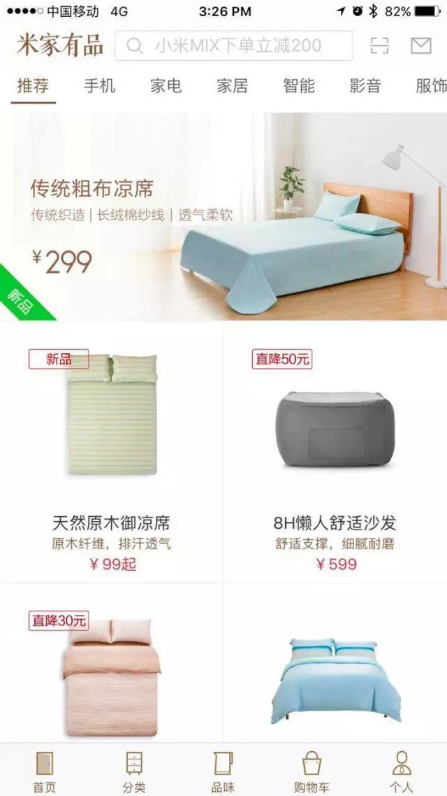 小米要占領(lǐng)年輕人的客廳,這樣小米百貨一定不滿足只做智能產(chǎn)品,而是要做品類更全的生活百貨。在小米官網(wǎng)上,除了智能產(chǎn)品之外,小米還賣背包,鞋子,拉桿箱,T恤等。小米百貨除了有小米生態(tài)鏈,事實(shí)上上還有一個(gè)叫做米家有品的APP,它的slogan是“做生活中的藝術(shù)品”,如果你打開這個(gè)APP,你會(huì)發(fā)現(xiàn)它就是“小米的網(wǎng)易嚴(yán)選”。