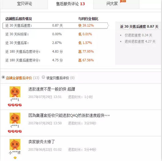 “售后評(píng)價(jià)”是針對(duì)買(mǎi)家對(duì)賣(mài)家“退款速度”及“退款態(tài)度”進(jìn)行相應(yīng)評(píng)價(jià),這也致使賣(mài)家在處理退款上不敢有絲毫馬虎。