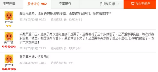而另一邊的買(mǎi)家卻不這么看,有買(mǎi)家認(rèn)為:“購(gòu)物是一種體驗(yàn),我在體驗(yàn)的過(guò)程中得不到相等價(jià)的服務(wù),我當(dāng)然有權(quán)利申請(qǐng)退款,在退款過(guò)程中賣(mài)家的態(tài)度我自然也可以在“售后評(píng)價(jià)”中寫(xiě)明,讓后面的買(mǎi)家參考,如果遇到的是比較黑心的賣(mài)家,也能讓買(mǎi)家們提高警惕。”