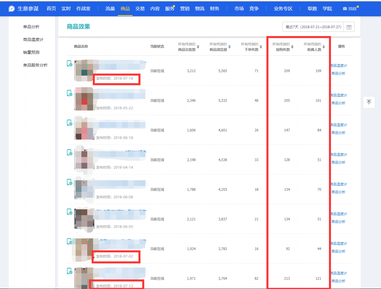 通過新品上架后的收藏加購(gòu)比例來確定一個(gè)款式好壞,這也是測(cè)款的一種方式,然后挑選好的做為爆款操作的主推款!