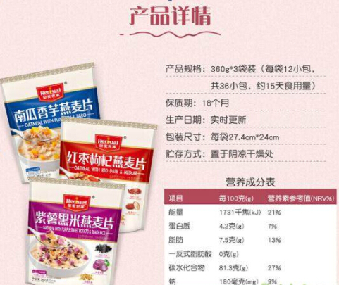 如圖為燕麥片的產(chǎn)品規(guī)格圖,以及產(chǎn)品的營養(yǎng)成分表等。