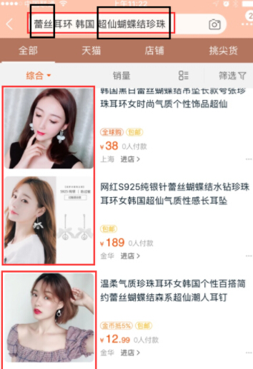 那要是我們的店鋪的曝光詞很多,但是買家沒有點(diǎn)擊呢?這個(gè)時(shí)候我們就需要仔細(xì)分析了。舉個(gè)例子,比如:蕾絲耳環(huán) 韓國 超仙蝴蝶結(jié)珍珠。