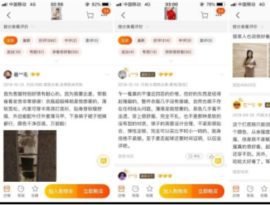 從以上圖中就能說明,同個(gè)產(chǎn)品里面的不同買家秀拍攝方式,瀏覽量是不一樣的,當(dāng)未購買用戶看到已購買用戶曬出的產(chǎn)品圖,未購買用戶是需要看到產(chǎn)品的品質(zhì),有沒有色差,搭配等相關(guān)內(nèi)容。