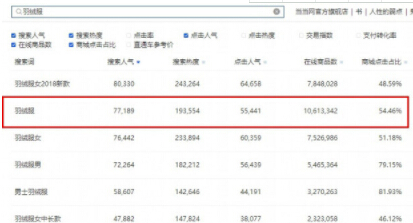 比如你想要賣衣服,就拿“羽絨服”為例吧,我們首先要來分析下到它底有沒有市場。