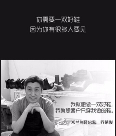 我給他出的主意,就抓住他對于鞋品質的追求,這個特點。打造匠人精神。我讓他把他們的師傅亮出來,配上一句文案:我就想做一雙好鞋,我就想客戶只穿我的鞋。