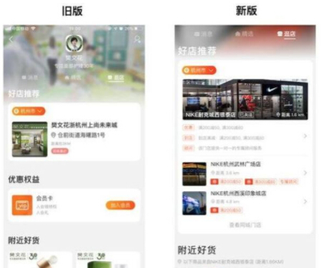 第四,原“逛店頁(yè)”中的會(huì)員信息將收縮在“門(mén)店頁(yè)”中,用戶需要從“逛店頁(yè)”進(jìn)入“門(mén)店頁(yè)”后再查看。
