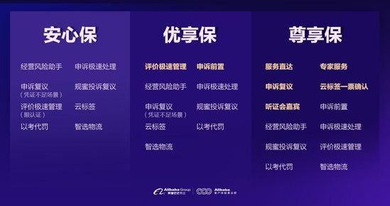 在超級保障計劃中,平臺將根據(jù)店鋪合規(guī)經(jīng)營情況,結(jié)合經(jīng)營能力、服務(wù)能力等,推出商家綜合信用分值——淘信用。根據(jù)淘信用的等級,分別提供了安心保、優(yōu)享保、尊享保三種差異化的權(quán)益包,信用越高,得到的權(quán)益保障就會越多。