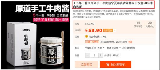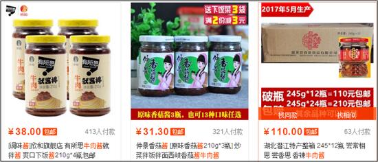 你看第一張圖,是常規(guī)的牛肉醬,一般情況下,那就大價(jià)格戰(zhàn)吧,差不多十幾塊錢一瓶,一般都會(huì)三瓶、四瓶、甚至十幾瓶這樣去賣,這就屬于沒(méi)有溢價(jià)元素的。
