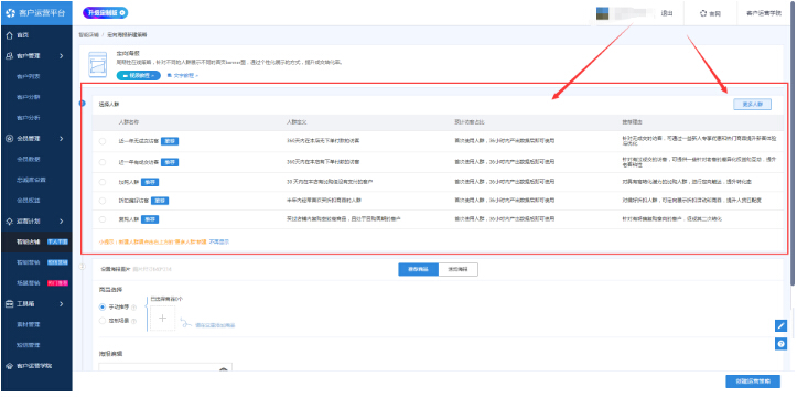 第一步:選擇人群,賣家可以選擇系統(tǒng)推薦人群,也可以自定義人群;