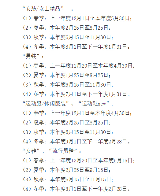 同時,服飾類商品的屬性要求是當年當季。具體要求如下: