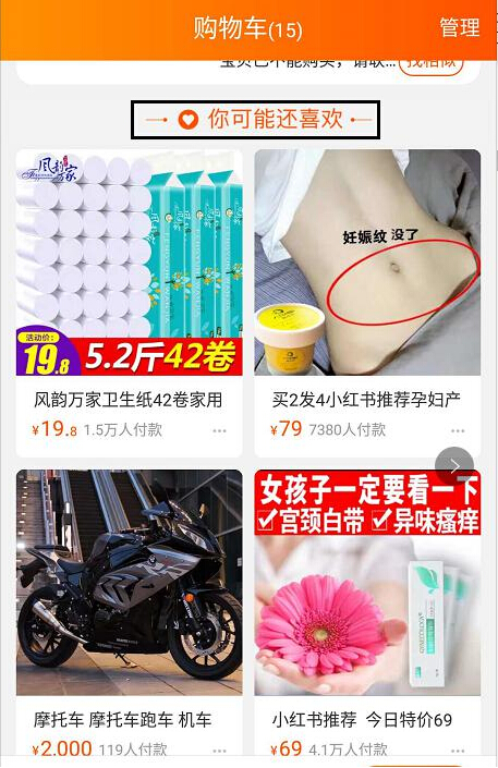 這里先要明確的是,在猜你喜歡位置上的流量除了系統(tǒng)分配的免費(fèi)流量,還可以能過推廣方式在猜你喜歡的位置上獲得展現(xiàn)。前排3個固定經(jīng)典位置(第7、11、15位,帶“hot”標(biāo))可以通過直通車定向投放猜你喜歡位置以及鉆展單品推廣投放猜你喜歡位置拿到流量。現(xiàn)在在猜你喜歡流量升級之后新增猜你喜歡后排(第16個寶貝開始算)位置,與自然推薦商品一起進(jìn)行無固定坑位的混合排序穿插展示