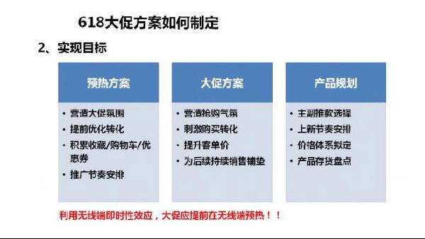 不過(guò),在今年的營(yíng)銷陣營(yíng)上,我們要增加無(wú)線端的玩法,也要增加無(wú)線端的目標(biāo)拆解,所以說(shuō),這個(gè)準(zhǔn)備工作是需要PC和無(wú)線一起同步進(jìn)行。如果你想主攻無(wú)線端,那就要更加關(guān)注無(wú)線端的拆解,制定目標(biāo),給無(wú)線端加入更多的流量。