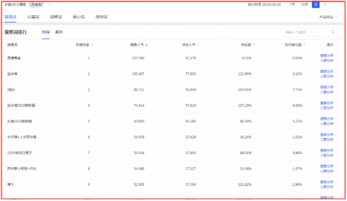 第一種就是典型的生意參謀查詞了,查詞呢,還是那種老方法,看詞的搜索人氣,點(diǎn)擊率,以及在線商品率等等。找到與你店鋪產(chǎn)品產(chǎn)品相符的詞,然后記錄下來(lái),等你選完之后,再?gòu)哪氵x擇的這些詞里邊選擇30個(gè)與你產(chǎn)品屬性相符度極高的關(guān)鍵詞就可以了。