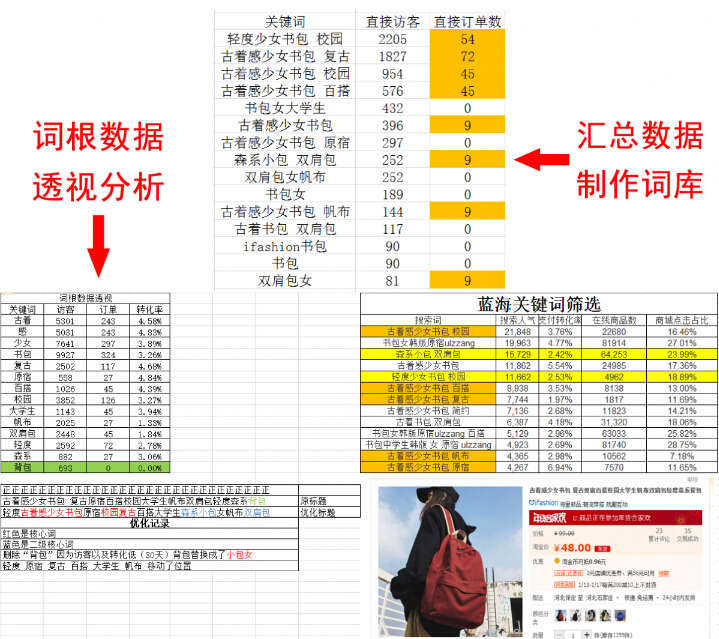 在這里可以看到每一個詞根的訪客,銷量數(shù)據(jù),通過表格數(shù)據(jù)透視清晰明了剖析了每個詞根轉(zhuǎn)化率(收藏加購率也可以制作)。