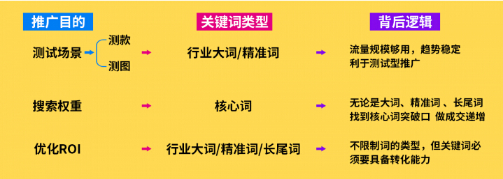 詞的類型不同,在推廣中運用場景不一樣。