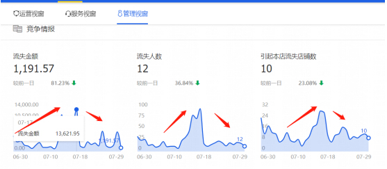 所以競爭小流量大的渠道說的就是它了,而且我給大家看一個案例店鋪,這家店鋪在7月中旬的時候流失金額高達13621!競爭店鋪高達30家!
