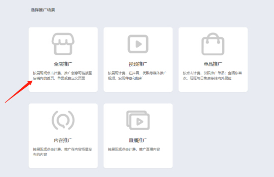 首先咱們進入我要推廣---鉆展,然后新建推廣計劃,投方場景選擇全店推廣。