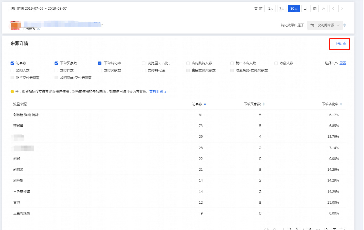 2.打開生意參謀—流量—商品來源—手淘搜索—詳情—30天數(shù)據(jù)下載