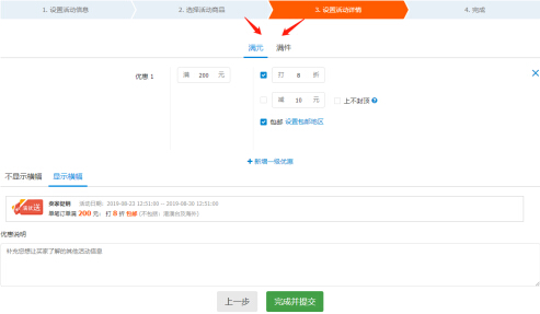 點擊完成并提交,滿減活動就會出現(xiàn)在寶貝的詳情頁啦!