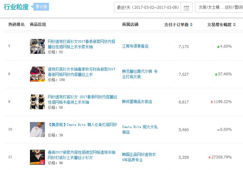 在行業(yè)粒度里面,我們可以分析競品的流量渠道和主要關(guān)鍵詞,在店鋪商品榜的行業(yè)粒度的里面,我們能看到這個商品的詳細(xì)信息,包括他的支付轉(zhuǎn)化指數(shù)、以及子訂單數(shù),還要支付件數(shù)、轉(zhuǎn)化率等等,這些所有數(shù)據(jù)都可以同我們自己的寶貝進(jìn)行對比;其次就是關(guān)鍵詞的分析,我們可以分析寶貝在手淘搜索中主要的引流關(guān)鍵詞和轉(zhuǎn)化關(guān)鍵詞,從而提升我們產(chǎn)品的核心競爭詞。