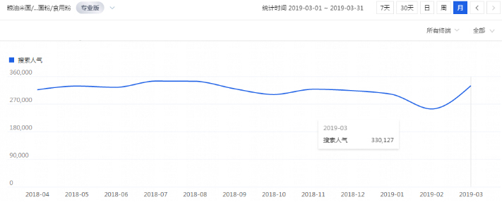 天貓代運(yùn)營(yíng)今天拿食品類目來(lái)給大家講解下,產(chǎn)品是豌豆淀粉,主要是用來(lái)做涼粉的。從市場(chǎng)行情可以看出豌豆淀粉的旺季就是夏季,整個(gè)市場(chǎng)從轉(zhuǎn)過(guò)年回來(lái)就開(kāi)始熱起來(lái),市場(chǎng)最熱的時(shí)候就是七八月份溫度最高的時(shí)候。