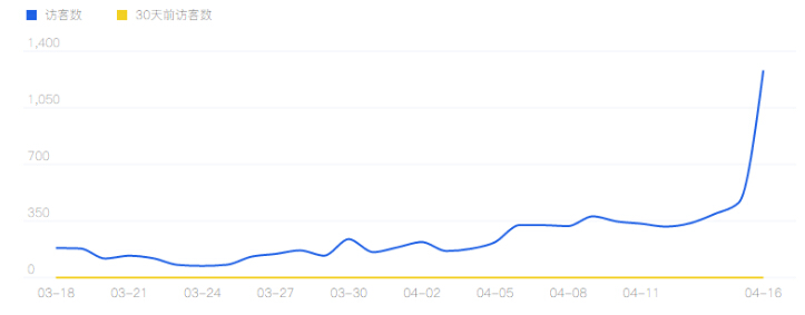 30天數(shù)據(jù),一直在穩(wěn)步提到,4.16號(hào)得到爆發(fā),當(dāng)天下單買(mǎi)家數(shù)251,商品訪客數(shù)1645