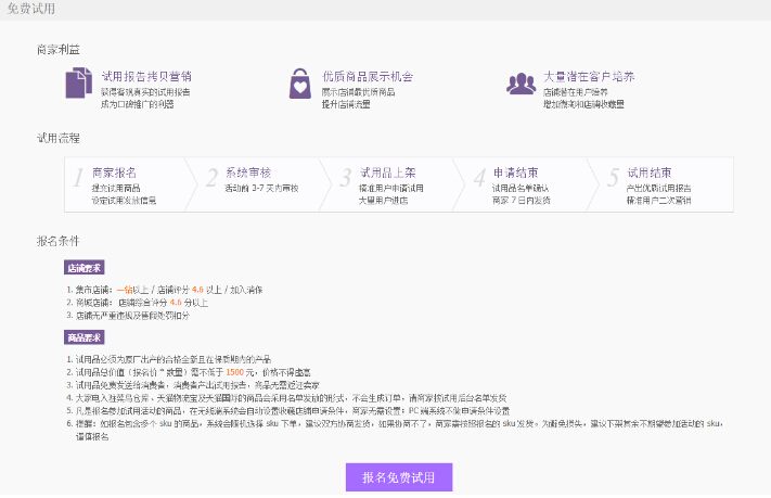 其次還有可以報名官方的試用,能夠參加的商家可以去報名哦,有助于提升我們的轉(zhuǎn)化率。